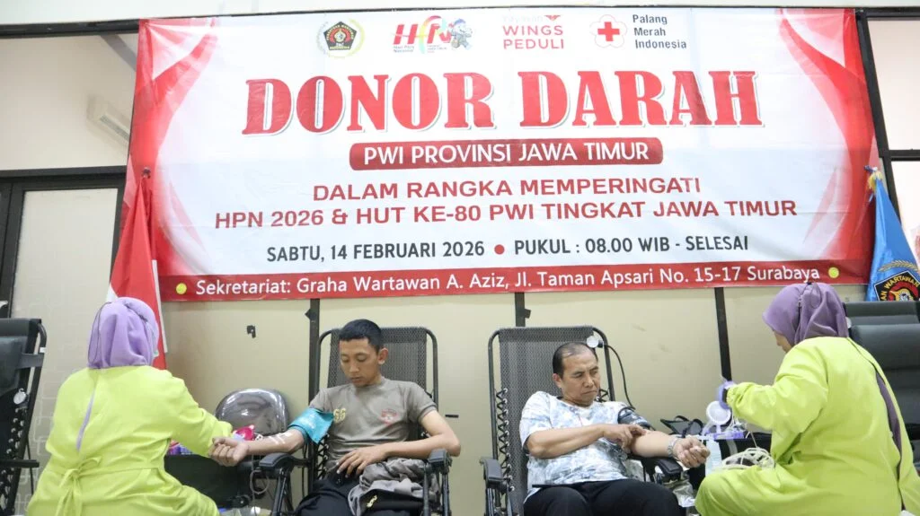 Donor Darah HPN 2026 PWI Jatim Berlangsung Meriah, Wujud Nyata Kepedulian Wartawan